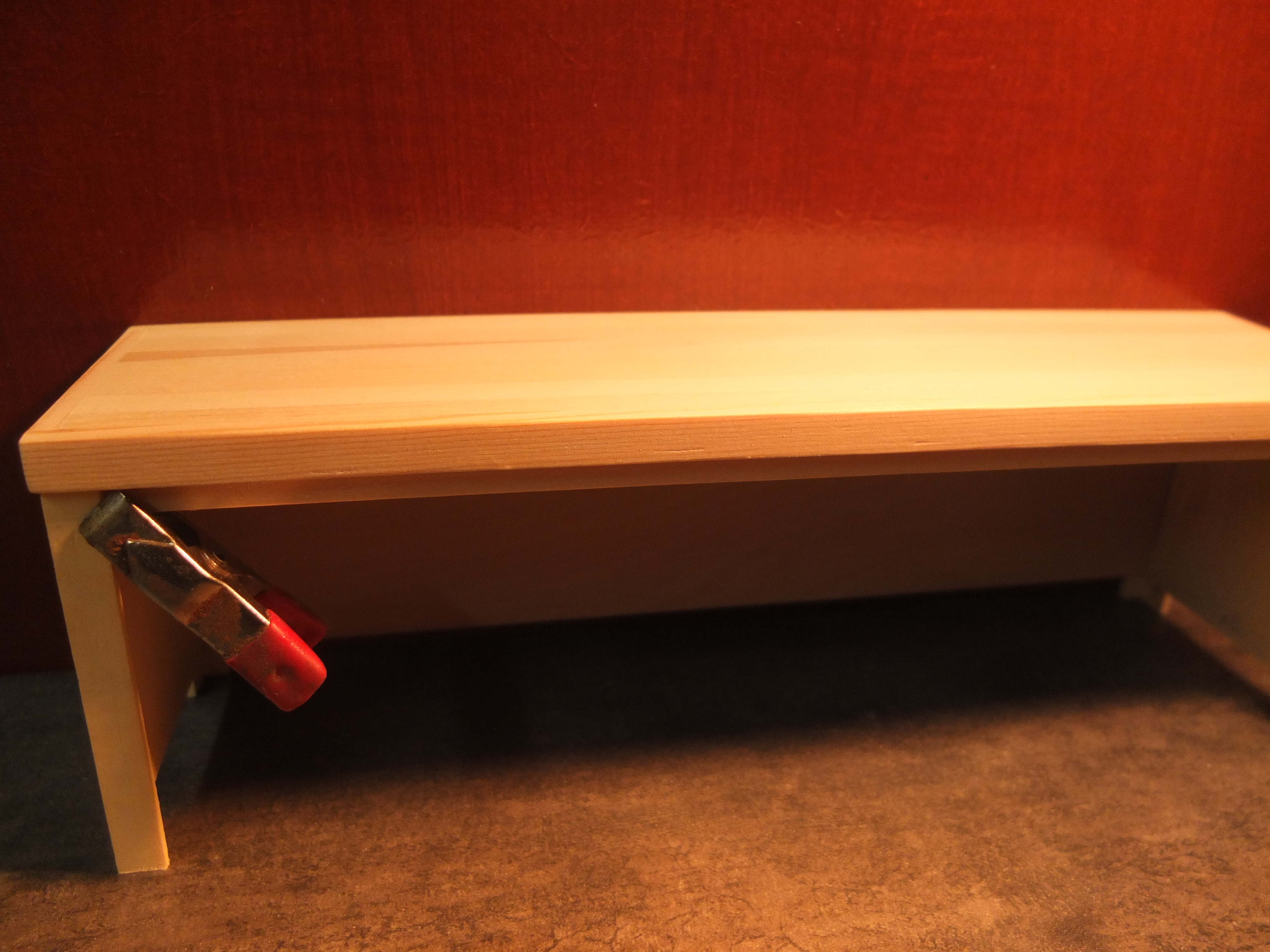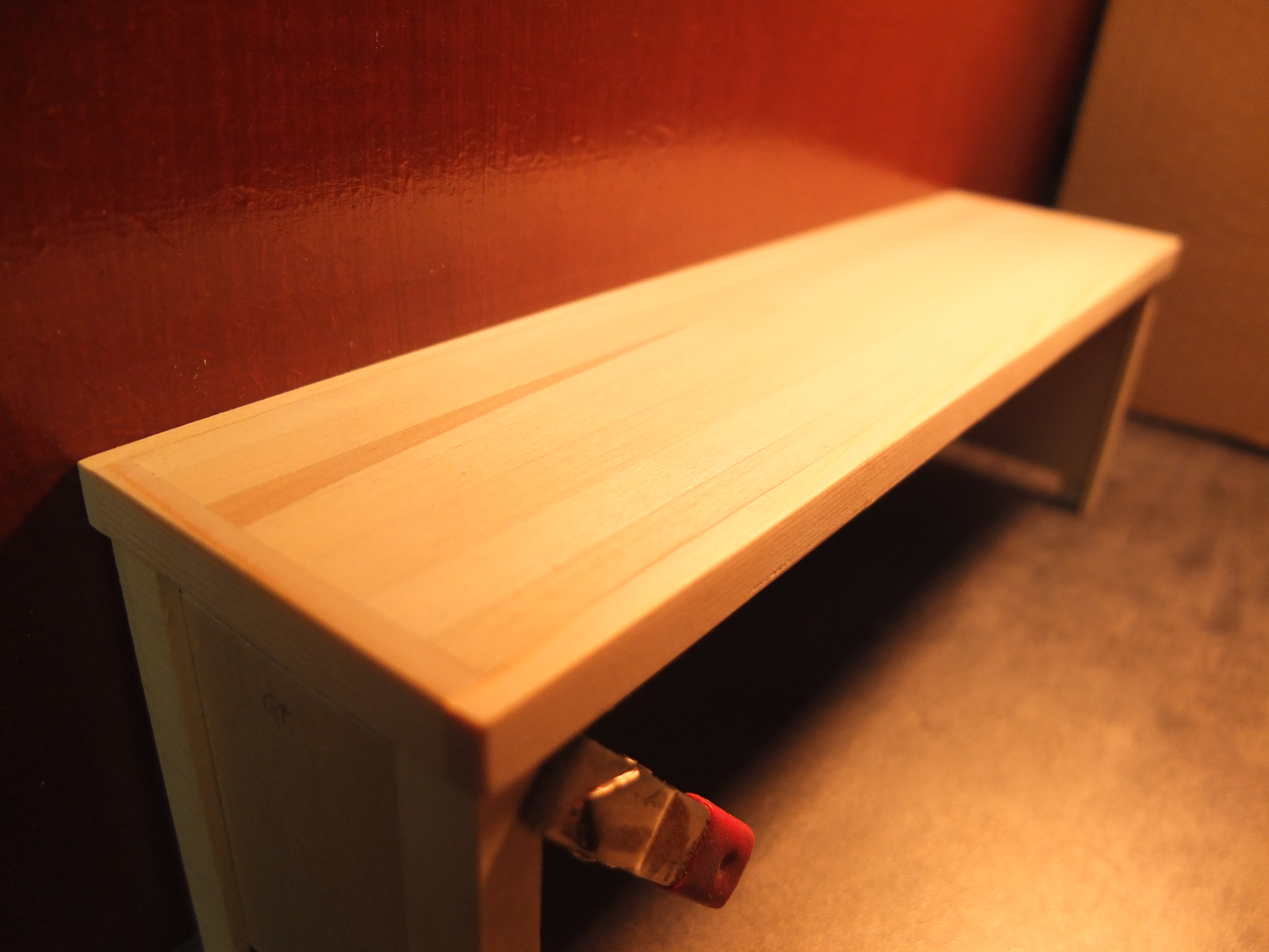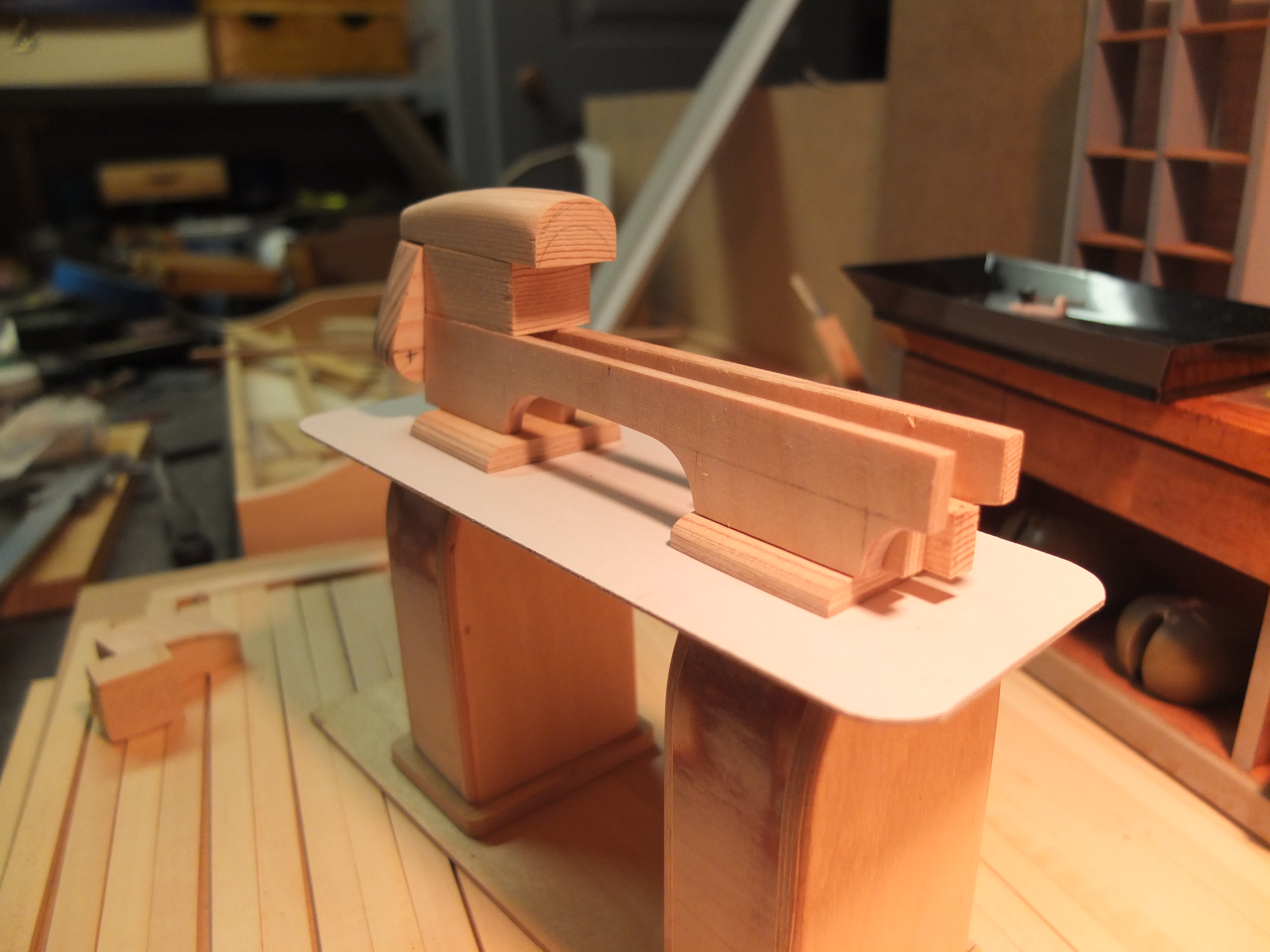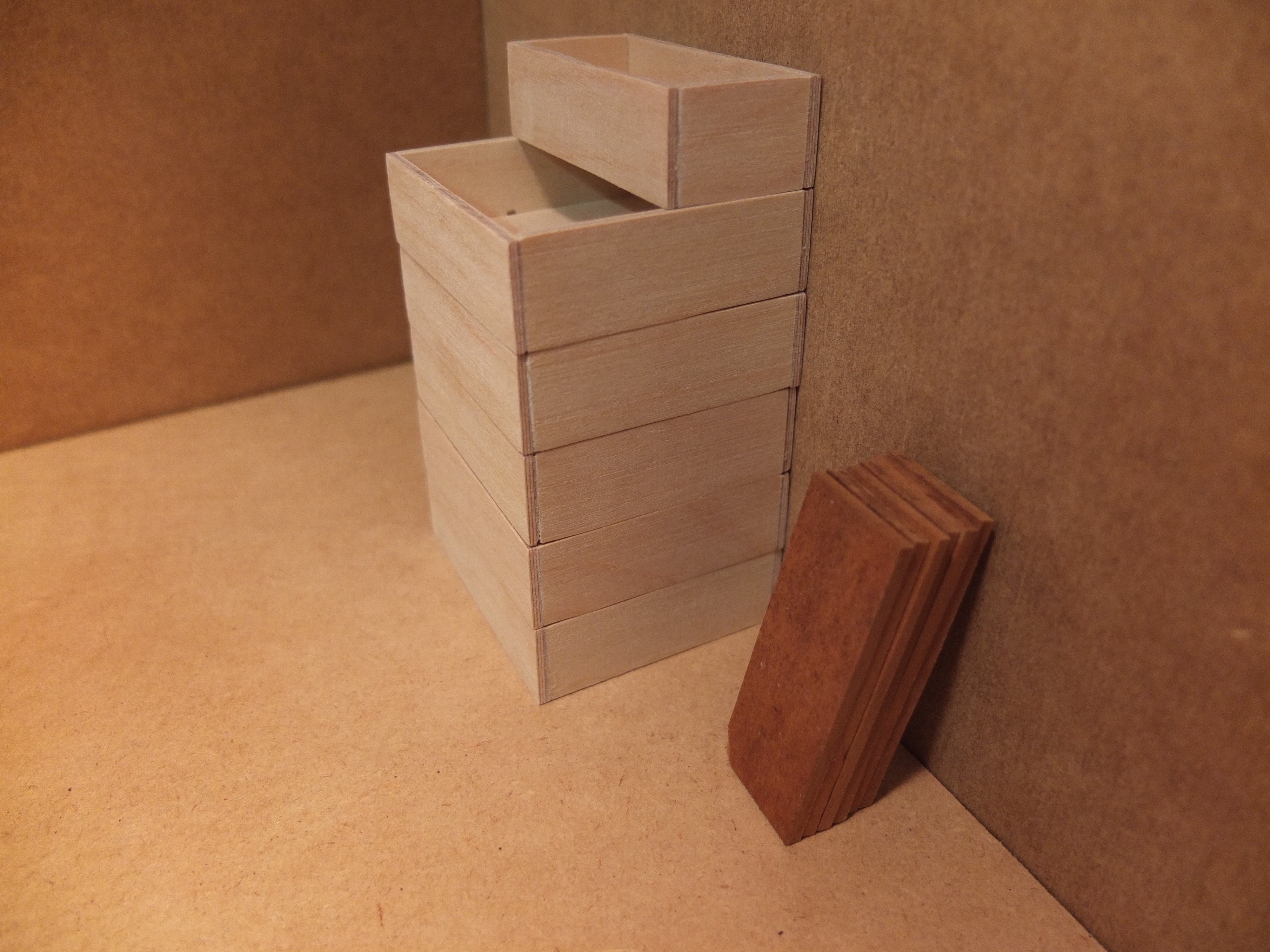 Start of the manufacturing of the workbench: The species used were poplar for the workbench, 2mm plywood for the drawers, and exotic wood (don't ask me which one) for the facades, recovered from a location I don't know.